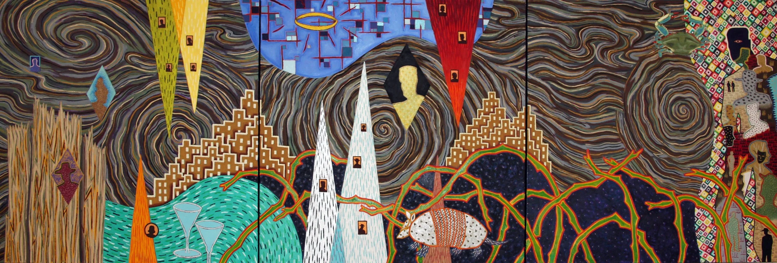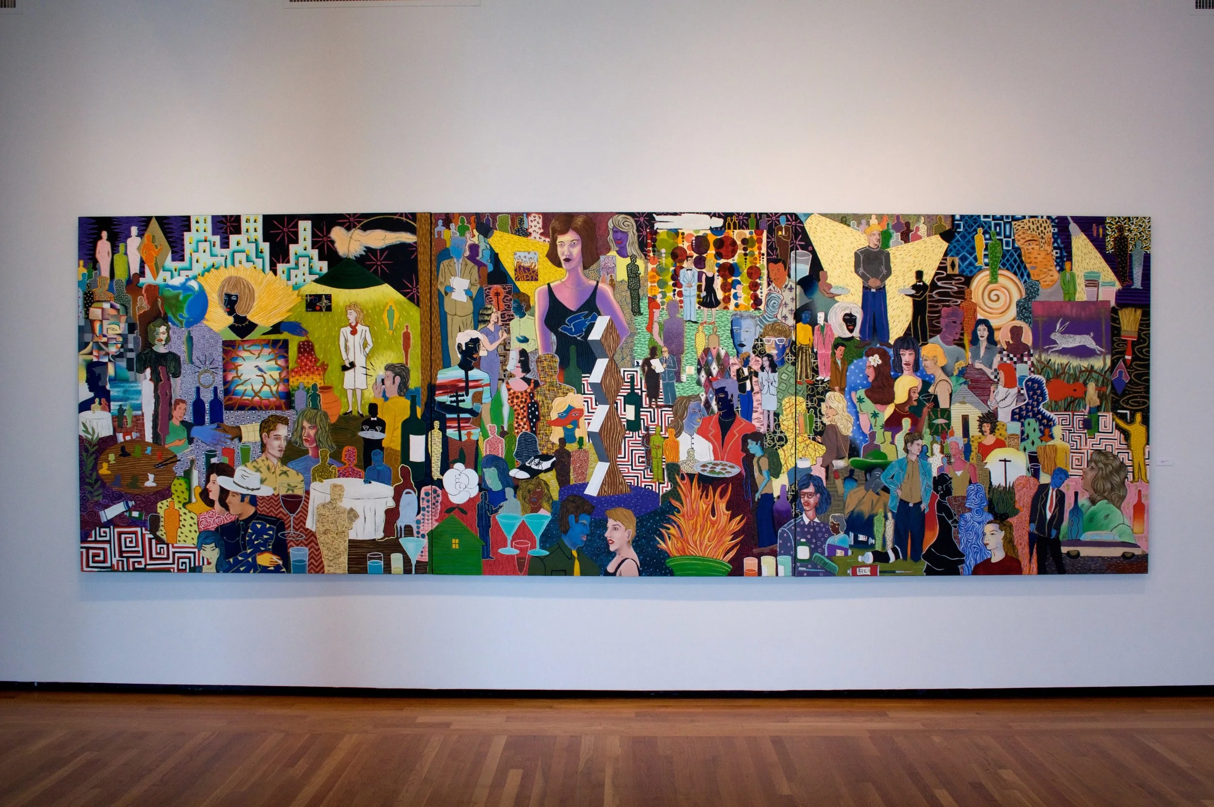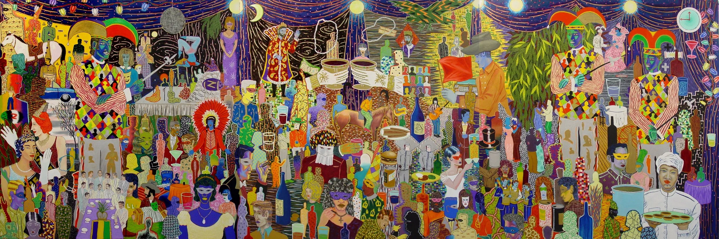 Born on Mardi Gras 6 feet high x 18 feet long, triptych - 10th Floor Elevator Lobby